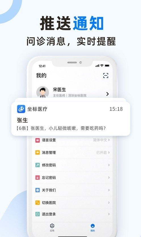医生能够使用坐标医疗软件时实接收患者的线上咨询