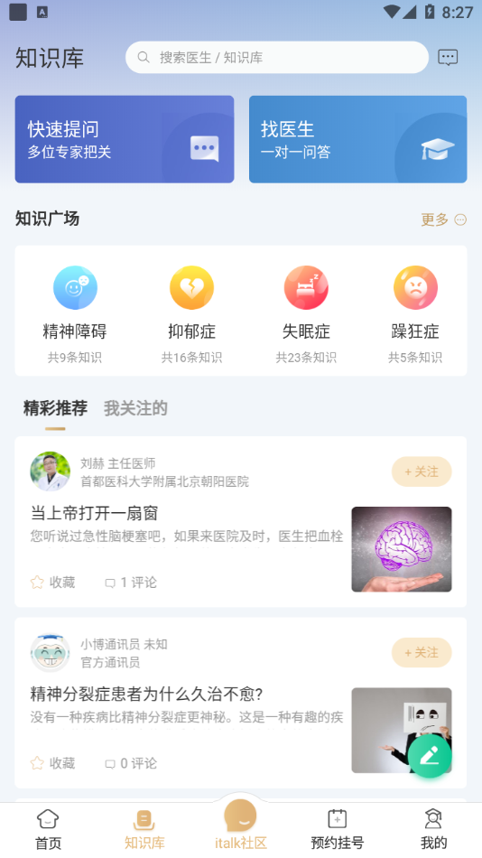 1、一款医疗正常服务平台,平台具备大量名医,具备大量常识库,还具备italk社区,预定挂号等板块,能够帮忙用户更好的正常日常。