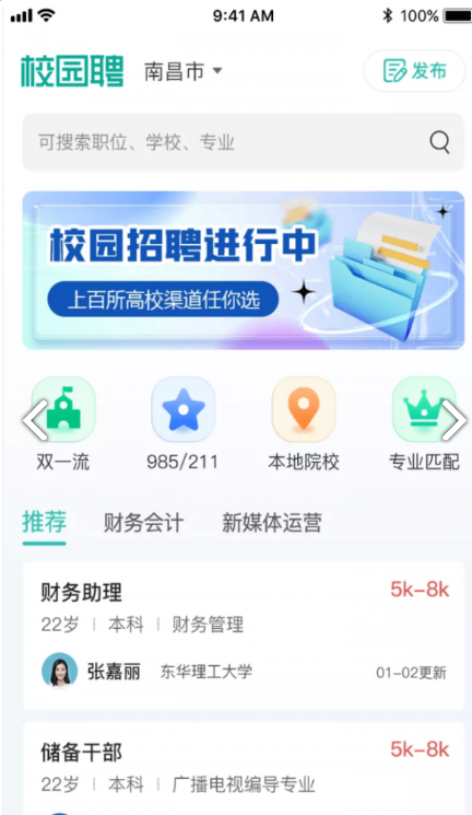 校园聘企业端求职内容都能够在校园里开展招聘了,刚刚毕业的大学生都能够简单的在校就能找到工作,各种企业的招聘信息都非常的完善,简单的看到工作招聘的需求,符合自己的工作都能去沟通和联系,做到工作的各种有效的互动,得到的效果都非常的高,工作招聘简单,求职者的工作也会找的更加简单。
