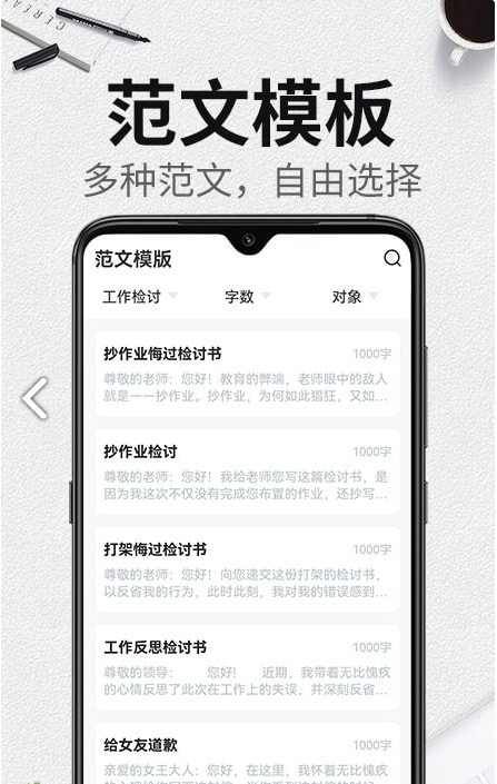 它自带有多种种类的检讨书模板,能够按照你需要写的检讨书种类来挑选合适的模板快捷生成一篇检讨书。
