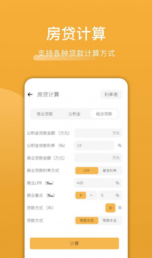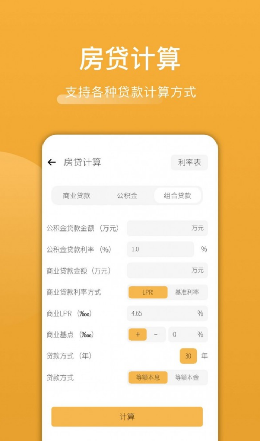 包包含多种不同的计算功能,比如商业贷款、公积金贷款、组合贷款等
