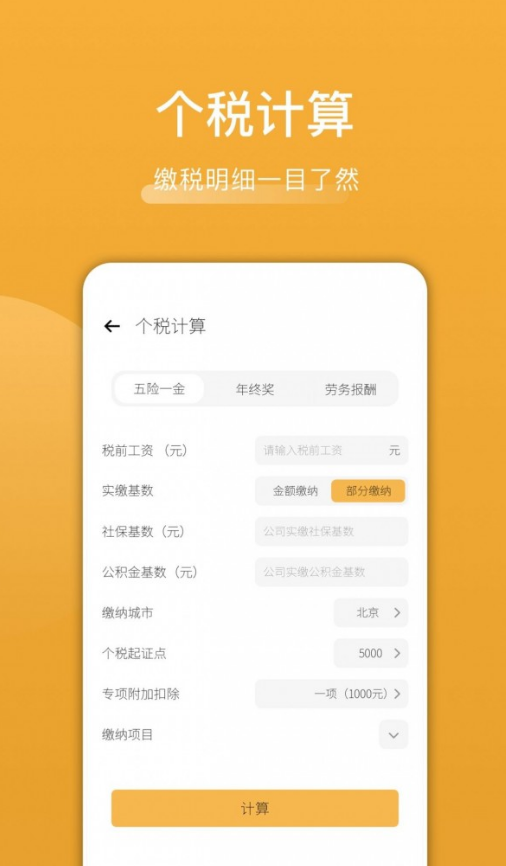 支持多种不同的计算方式,时实计算、个税计算、房贷计算等等
