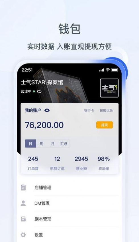 每天能够查看到具体的营业数据,给予强大的数据统计功能