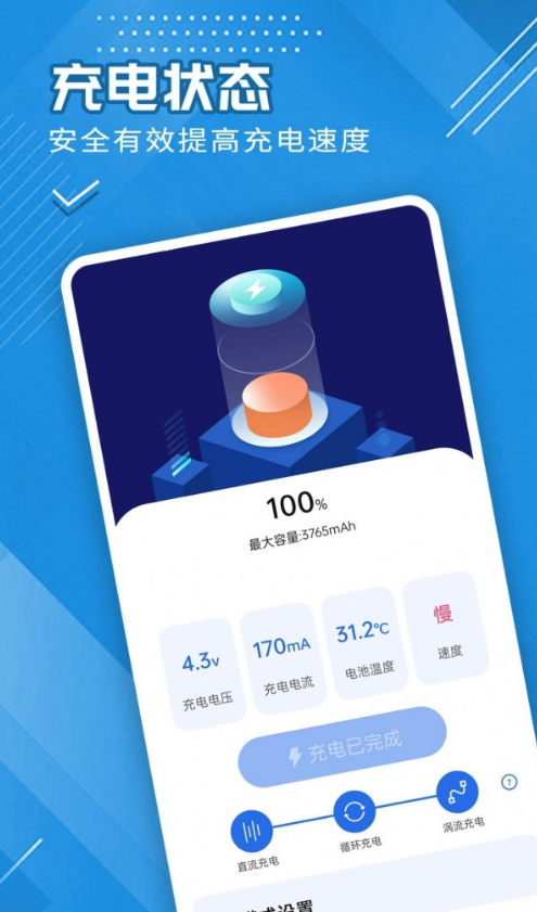 全能电池护卫app能够为用户们给予详细的电池信息,包含了电池的剩余电量以及可用时长,还能够对电池的充电开展优化。使用软件能够在加快手机充电效率的另外为手机开展降温,避免因为充电温度过高而缩短手机电池的寿命。软件还带来了多种充电动画,用户们能够挑选自己喜欢的动画开展设置,让朋友们的手机充电显示更加炫酷。