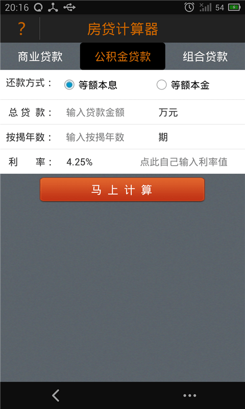 房贷计算app能够帮助贷款买房者简单计算出相关的费用。这里有着非常强大的计算功能,能够准确地计算出贷款买房后每月所应该还款的费用,能够让用户们提前做好购房准备。软件的操作十分简单,其简便干净的界面能够带来更加高品质的计算体验。所有计算的结果都能够保存下来,便于用户们随时查看。