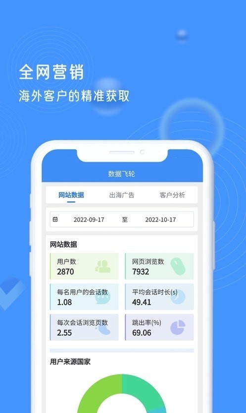 出海云是一款经营管理服务软件,给用户合理的分配客户资源信息,线上就能了解客户的动态信息,还能去查看广告投放信息,数据管理都很便利,全网营销信息都能够查看到,海外客户都能简单取得,数字化管理,随时能够线上取得客户信息和资源。