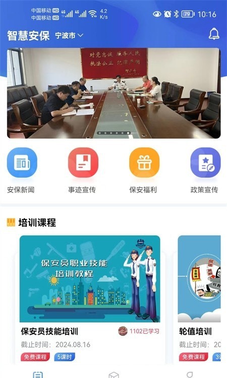 智慧安保平台这个软件里面有很多相关的安保课程信息,能够切换各个地区开展了解,综合的培训和管理服务,全是线上开展技能培训,课程全是免费给予的,有最新的培训信息都会及时的通知你,多个不同模块的服务能够去查看,为你定位所在的城市安保信息。