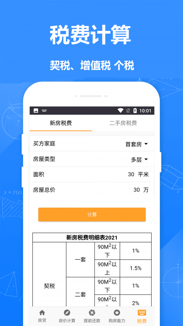 支持计算买卖新房、二手房子所需缴纳的各项交易税费