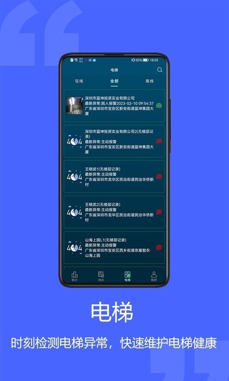 梯智宝app能够帮助用户们更好地对电梯开展管理,能够及时对故障的电梯开展维修,便于保障业主的使用安全。对于发生故障的电梯,软件会及时发出预警,方便用户们第一时间查看电梯情况。使用该软件能够另外管理多台电梯,对于电梯的经营情况简单明了。软件还会显示故障电梯的维修进度,也能够及时通知维修人员开展故障维修。