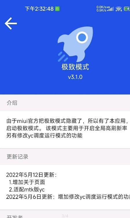 极致模式app能够全方位地提升小米手机的性能,能够使手机运行更加流畅,全程全是高刷新率,让朋友们能够获得更加高品质的手机使用体验。当然也会出现手机续航下降的问题,假如你想体验一次不同的小米手机,能够尝试下载使用。该软件所占内存非常小,设置也十分简便,感兴趣的小伙伴们赶紧试一试吧!
