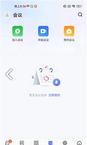 界面清爽简约,一键预约、发起、加入会议;