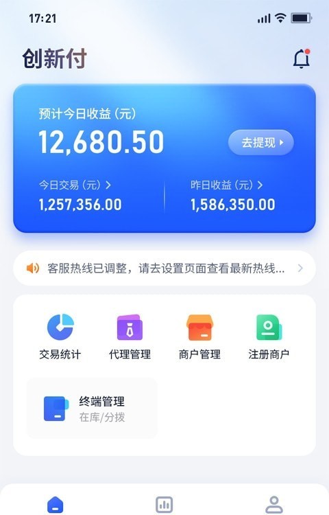创新付管家app能够帮助用户们更好地对店铺开展管理,能够及时处理店铺内的各项事宜,时实取得店铺详细的运营数据。另外能够对店铺的账目开展核对,也能够查看店铺存货的详细数据。利用这款软件也能够线上关于店铺运营相关的内容,能够不断提升朋友们的管理能力,使管理工作更加高效。