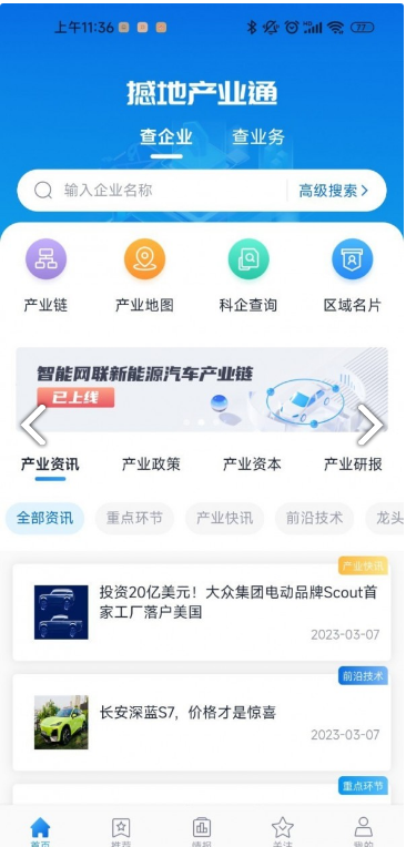 智慧产业通是一个办公资讯类软件,行业的情况能够线上查寻,最新的发展趋势也能及时的了解到,功能都划分的详细,搜索关键字就能够取得到相关的内容,直接能够去了解行业的产业相关知识,也能给招商带来更多的便利,服务周全,信息还是比较丰富的。
