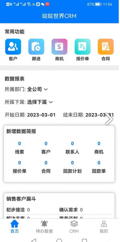 哒哒世界是一个营销客户管理软件,里面涵盖了最全的营销模式,自己的客户信息都能够线上查寻,合同也能线上签订或者查寻,能够和客户线上开展沟通,功能都划分的详细,取得客户也比较的简便,让你每月都能够尽早的开单,提高自己的办公效率。
