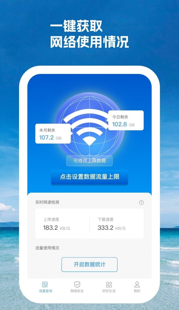 具备流量监测、安全检测等功能,可随时随地查看自己的网络使用活动