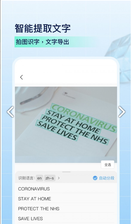 1.能够扫描各种文件、图片、书籍等提取想要的文字