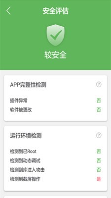 APP运行环境监测:时实监测S盾运行环境,有效抵御重新打包、动态调试、库注入,截屏等攻击带来的风险,并给予风险评级信息和注释,让用户了解APP运行环境安全状态和学习安全防护知识。