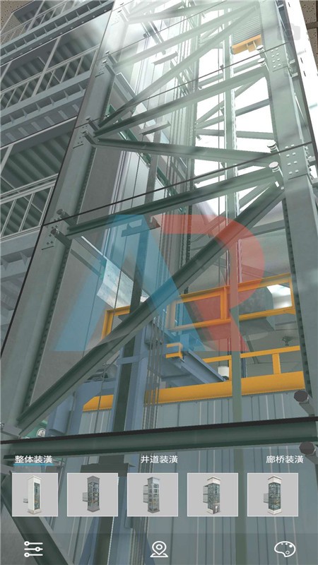 利用AR功能,实现在现实环境中摆放加装电梯,以观看老旧小区楼房加装电梯后的效果。软件中添加了电梯参数设置及外型更换功能,使用者利用简便操作即可实现加装电梯与建筑物的匹配。