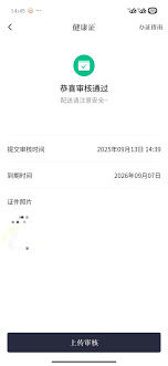 在上传完成后,系统会对上传的照片进行审核。审核时间可能会有所不同,但通常不会太长。您可以在app内查看审核进度,如果审核通过,就意味着您的健康证已成功上传,满足了平台的要求。