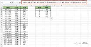 假设我们有一张销售记录表,包含日期、产品名称和销售额等列。要计算特定日期范围内某产品的销售总额,可以这样使用 sumifs 函数:=sumifs(c:c,a:a,">=开始日期",a:a,"<=结束日期",b:b,"产品名称"),其中 c 列为销售额列,a 列为日期列,b 列为产品名称列。
