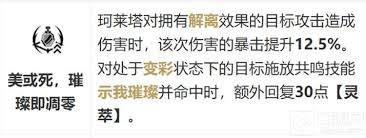 二命往往会带来较为显著的变化。可能会大幅增强珂莱塔的核心输出技能,提升伤害倍率,或者改变技能的机制,使其在不同环境下适用性更广。比如,原本伤害有限的技能,在二命加持下,成为团队输出的关键手段,无论是在 pve 副本中面对强大 boss,还是在 pvp 竞技中与对手对抗,都能凭借二命后的技能优势占据上风。