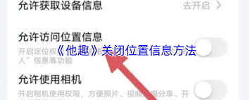 而对于“允许他趣获取位置信息”选项,同样把开关切换到关闭状态。这样他趣应用本身就无法获取您的位置信息了。