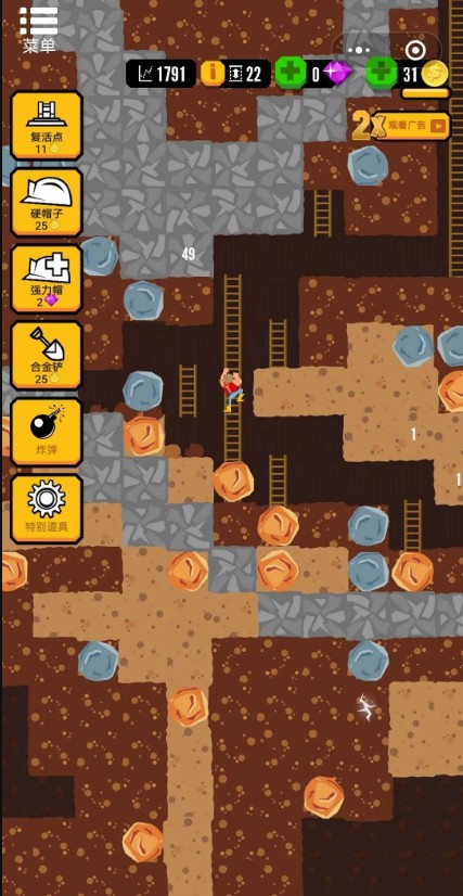 2. 收集金币可以升级你的斧头,提高挖掘效率,更快地探索地下世界。