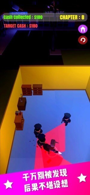 小偷王(逃脱闯关)是一款非常有趣的逃脱游戏,游戏画面非常的魔幻,化身经验老到的小偷,你需要躲避保安的追捕,根据你的视角和移动方向范围也会发生改变,在一个建筑中收获很多的金银财宝,安全的逃出这里,游戏的玩法非常的有趣,快点来OK游戏下载站下载体验吧