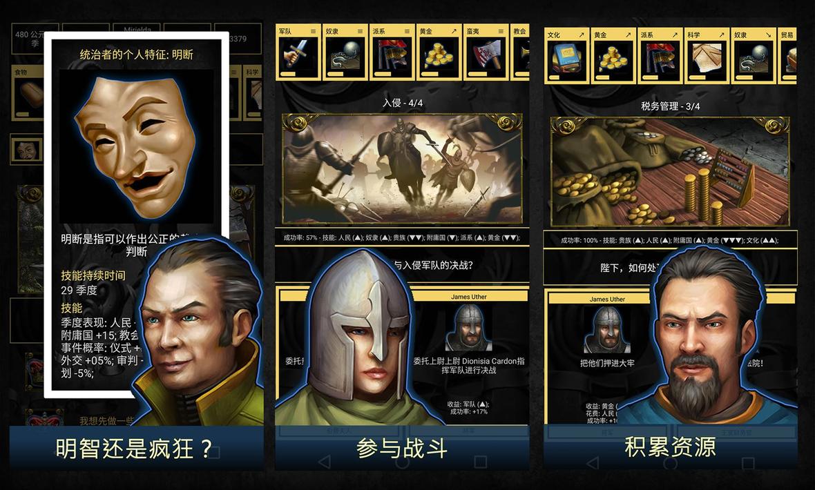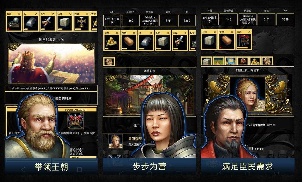 1. 游戏设定在中世纪,从公元476年到公元1492年,玩家需要统治自己的王国,经历不同的统治者王权更迭。