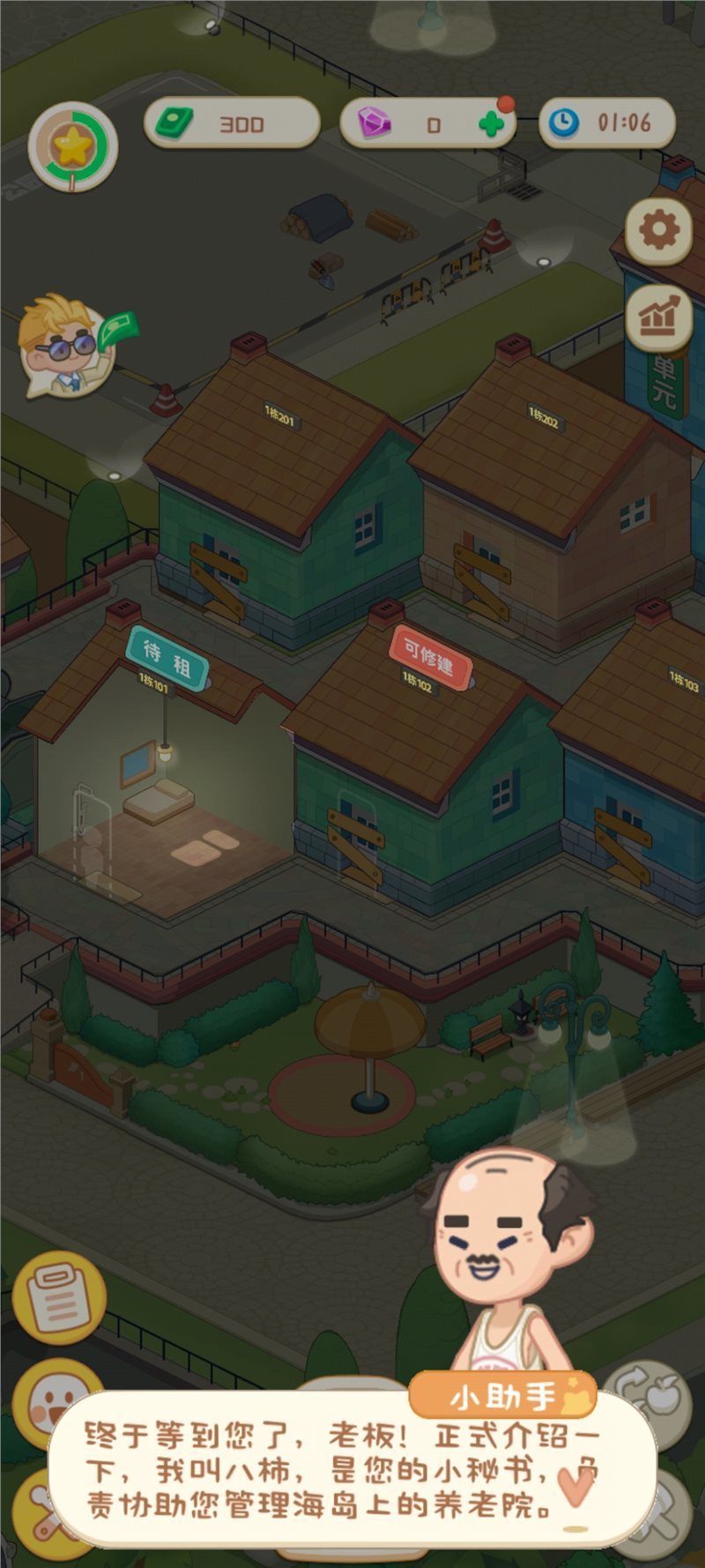 1. 多样化的养老院建设:玩家可以自由布置养老院的内部空间,解锁不同的建筑和装饰物,打造独一无二的养老院。