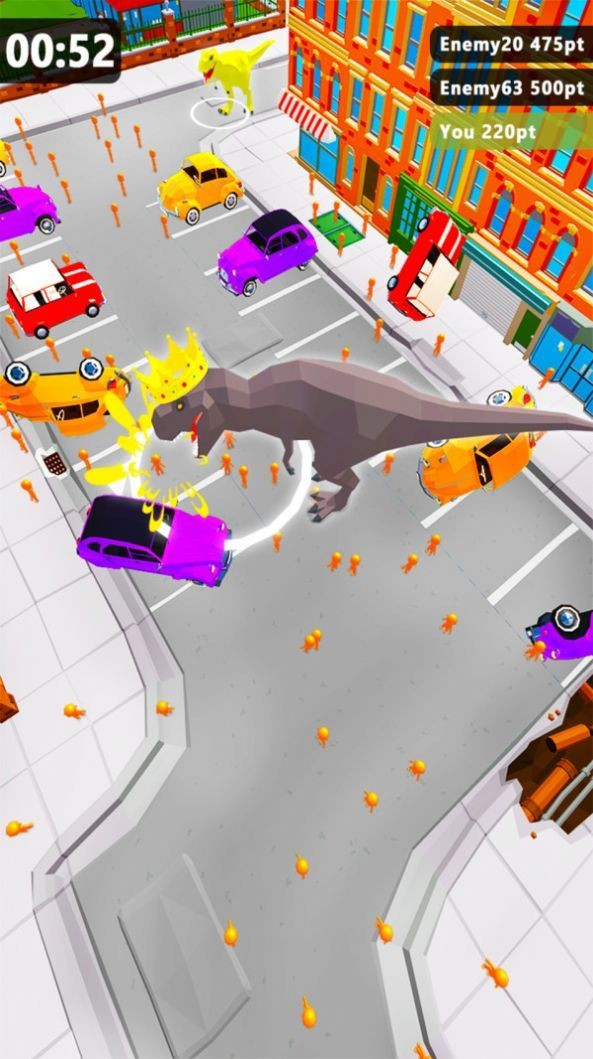 2. 玩家扮演的恐龙具有极高的护甲能力和破坏力,通过吃掉四散逃亡的人类来增强自己的力量。