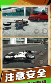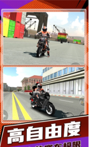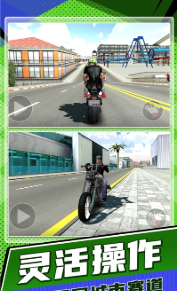 3. 真实的驾驶物理效果:游戏采用先进的物理引擎,模拟真实的驾驶体验,让玩家感受到摩托车的加速、刹车和转向等细节。