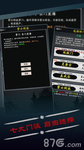 1. 七大宗门:游戏中有七大修真门派供玩家选择,每个门派都有独特的玩法和特色。