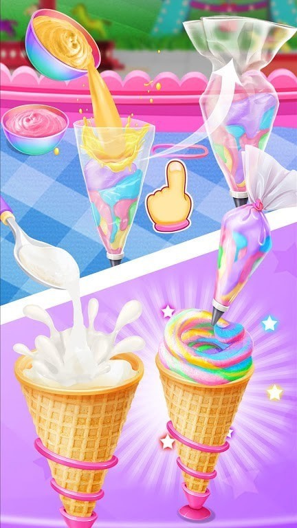1. 游戏目标:玩家的目标是成为一名出色的冰淇淋制作师,制作出各种美味的冰淇淋蛋筒,满足顾客的口味需求。