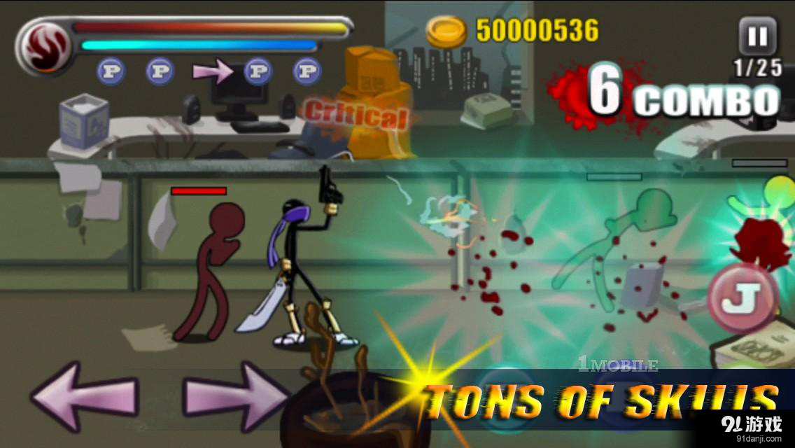 1. 玩家需要通过虚拟按键来控制火柴人的方向和动作指令,进行跳跃、攻击、躲避等操作。