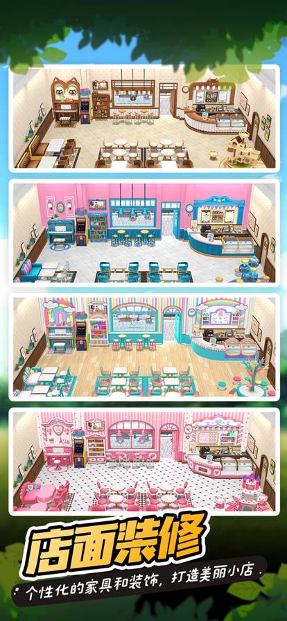 3. 猫咪角色:游戏中的宠物猫,不仅可爱,还能帮助店铺吸引更多的顾客。玩家可以与它们互动,收集并养成。