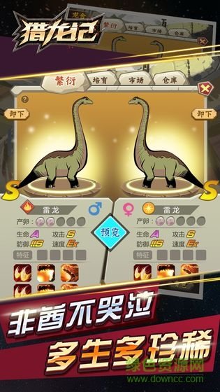 1. 独特的繁衍系统:猎龙记手游拥有独特的繁衍系统,玩家可以通过繁衍后代龙,逐步提升恐龙品质,打造属于自己的最强恐龙战队。