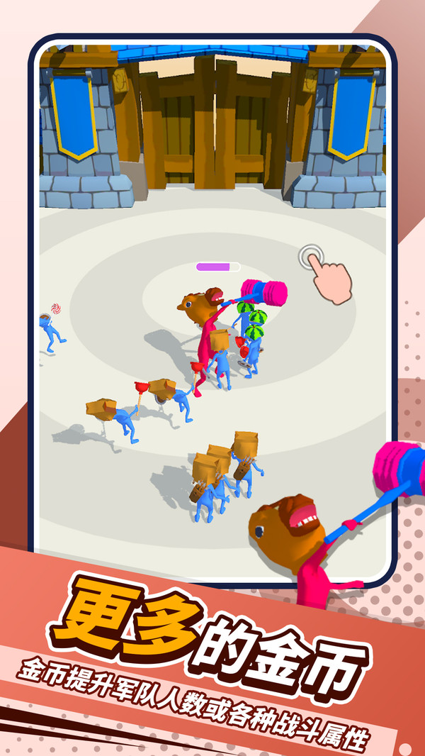 1. 玩家需要通过割草来召集小弟,增加自己的军队人数。