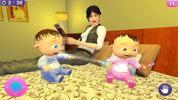 双胞胎婴儿模拟器是一款富有教育意义和娱乐价值的3d模拟游戏。玩家在游戏中将扮演一位母亲的角色,负责照顾一对双胞胎婴儿。游戏采用细腻的3d卡通画风,打造了一个完全逼真的虚拟环境,从喂养、换尿布到陪玩,各种细节都力求还原真实的育儿体验。这款游戏不仅让玩家感受到照顾婴儿的辛苦与快乐,还通过丰富的场景和任务,提升玩家对婴儿需求的理解和应对能力。