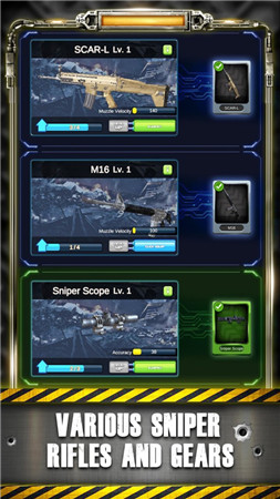 3. 多样的武器装备:玩家可以在游戏中选择多种不同类型的狙击枪和其他武器装备,每种武器都有独特的性能和特点,让玩家能够根据自己的喜好和任务需求进行选择。