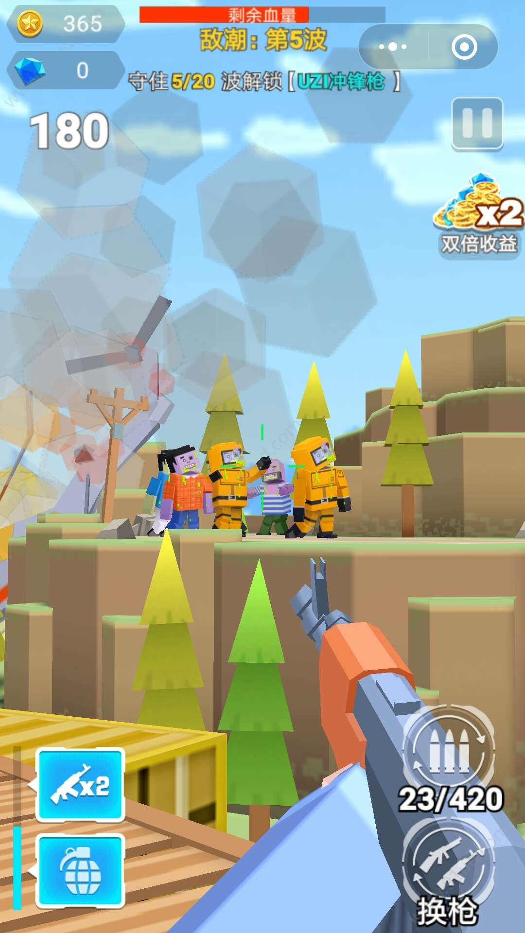 枪枪吃鸡是一款充满紧张刺激的大逃杀玩法手游,采用像素3d画面制作,为玩家带来独特的射击游戏体验。在这款游戏中,玩家可以从选择喜欢的形象开始,通过跳伞来到战场,在不断缩小的安全区内生存下去,利用手中的武器击倒敌人,活到最后即可赢得胜利,成功“吃鸡”。