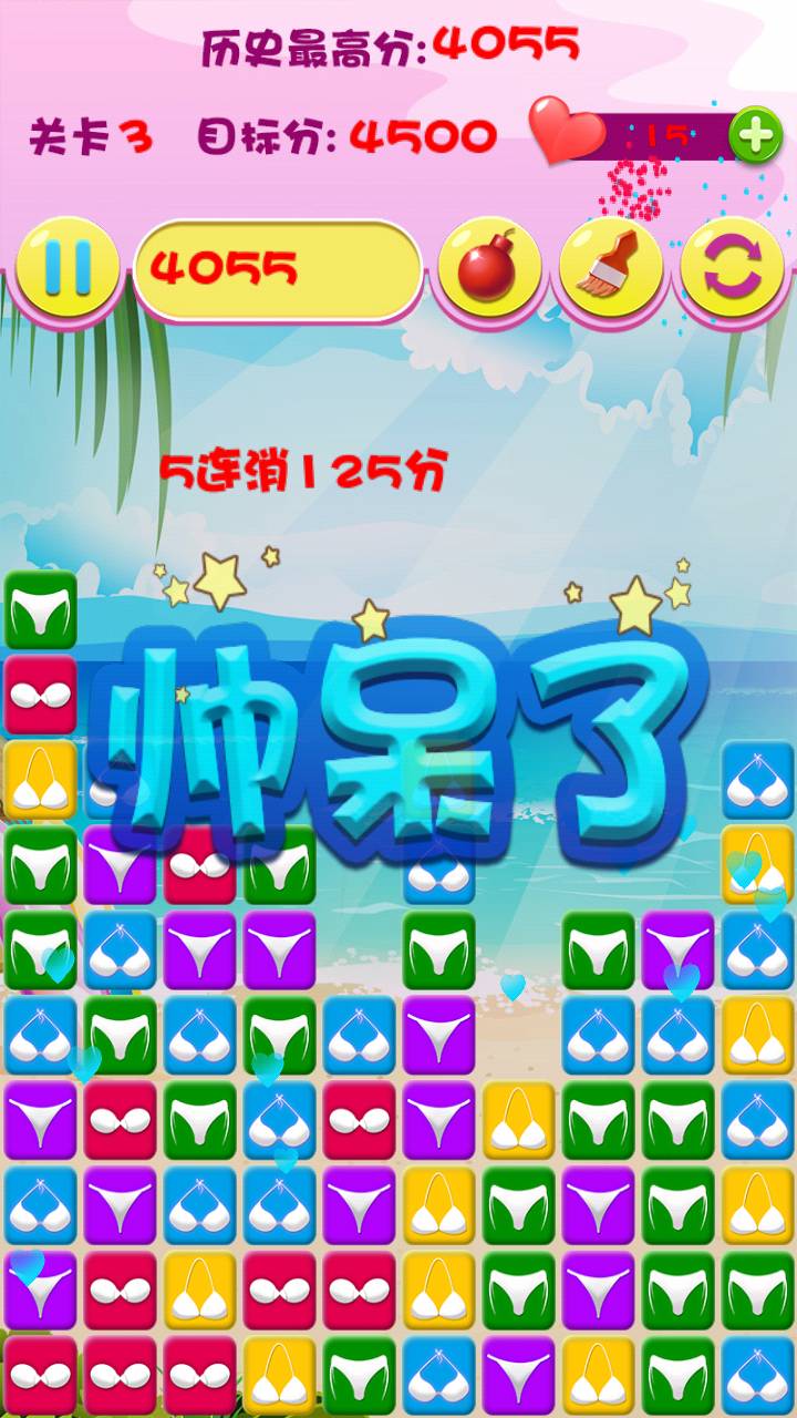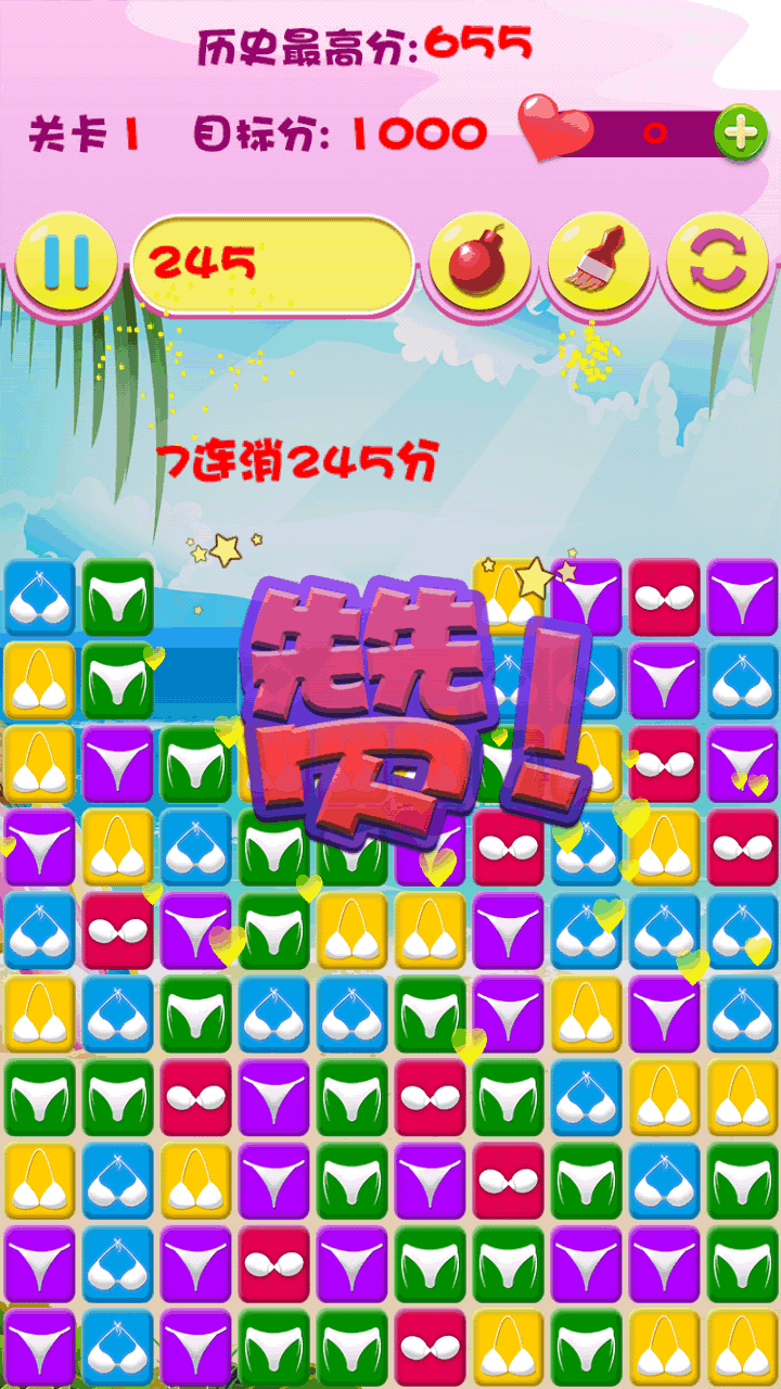 性感内衣消消乐是一款独特的休闲益智类安卓手机游戏,它巧妙地将经典的消除玩法与性感内衣元素相结合,为玩家带来全新的游戏体验。在游戏中,玩家需要通过点击并消除相同颜色的内衣,达到每关设定的目标分数,从而解锁更多有趣的关卡和奖励。游戏的主题背景设定在迷人的海滩上,搭配着清新简约的画风和性感迷人的内衣元素,让玩家在轻松愉快的氛围中享受消除的乐趣。