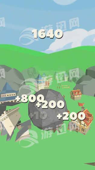 3. 收集奖励:摧毁障碍物后,玩家可以收集到各种奖励,用于提升巨石的力量、大小和速度等属性。